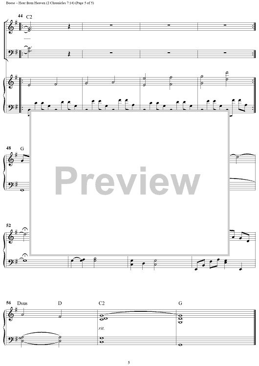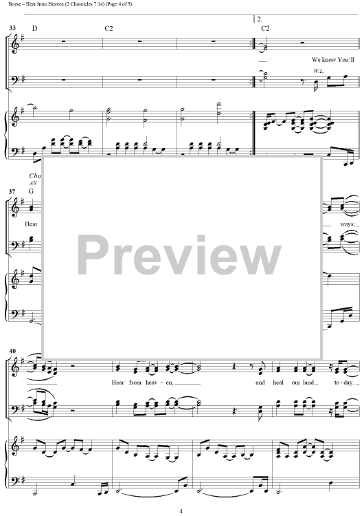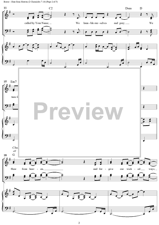Digital Sheet Music for Hear From Heaven (2 Chronicles 7:14) by Kevin Boese scored for Mixed Chorus/Piano; id:308963