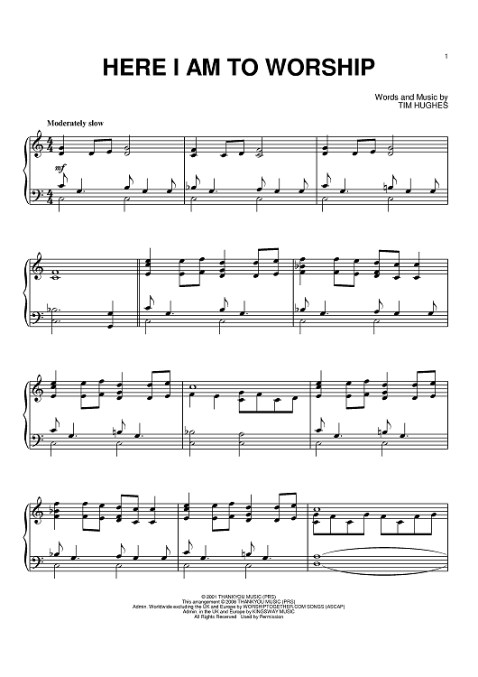 "Here I Am To Worship" Sheet Music by Tim Hughes