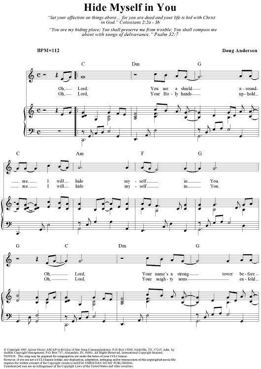 Digital Sheet Music for Hide Myself In You by Doug Anderson scored for Piano/Vocal/Chords; id:111864