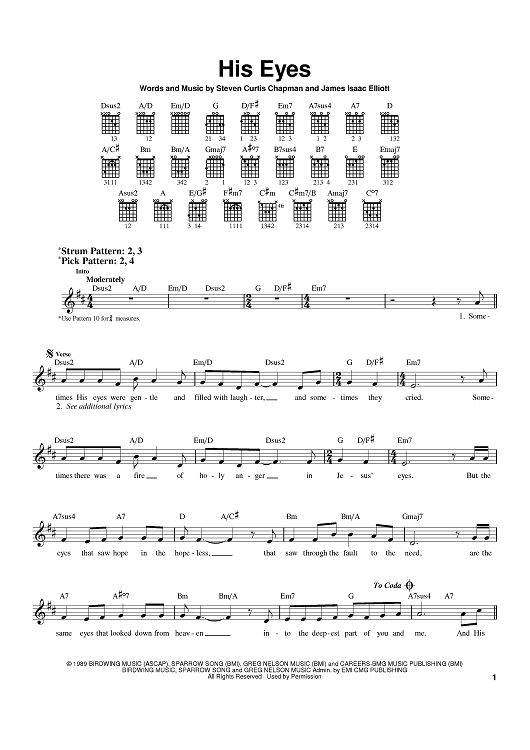 Digital Sheet Music for His Eyes by Steven Curtis Chapman, James Isaac Elliott scored for Easy Guitar; id:398266