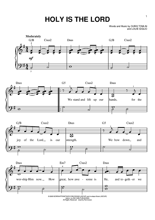 Digital Sheet Music for Holy Is The Lord by Chris Tomlin, Louie Giglio scored for Easy Piano; id:386308