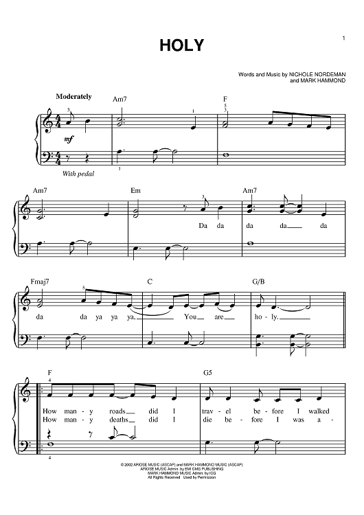 Digital Sheet Music for Holy by Nichole Nordeman, Mark Hammond scored for Easy Piano; id:383475
