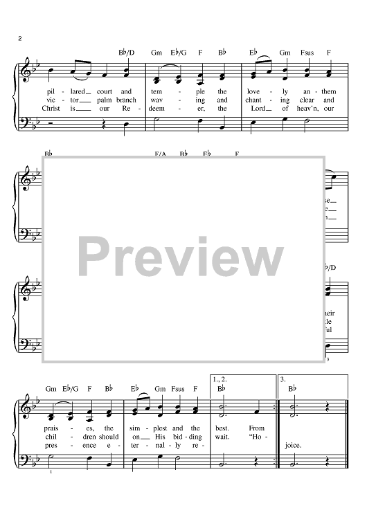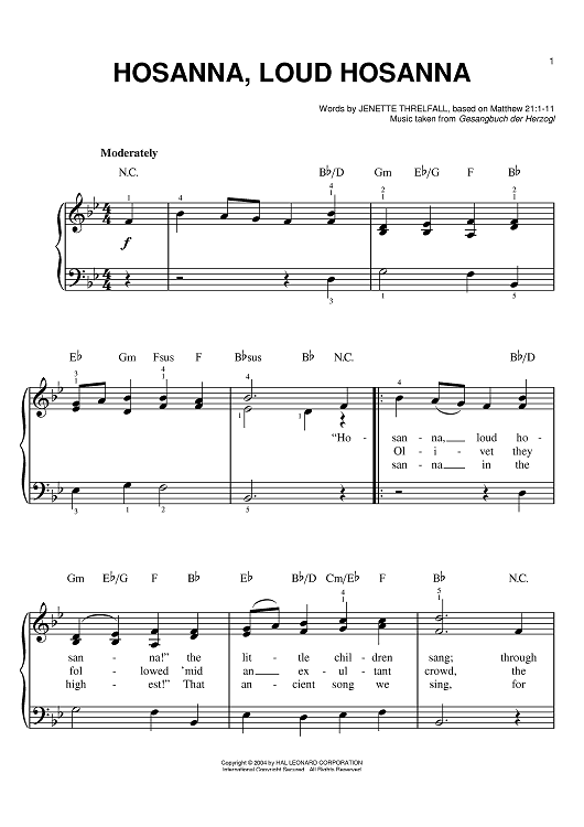 Digital Sheet Music for Hosanna, Loud Hosanna by Gesangbuch der Herzogl, Jennette Threlfall scored for Easy Piano; id:381125