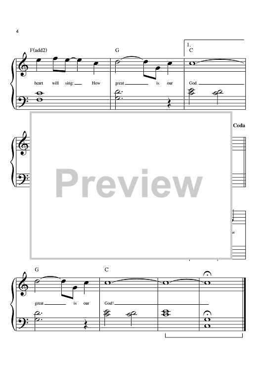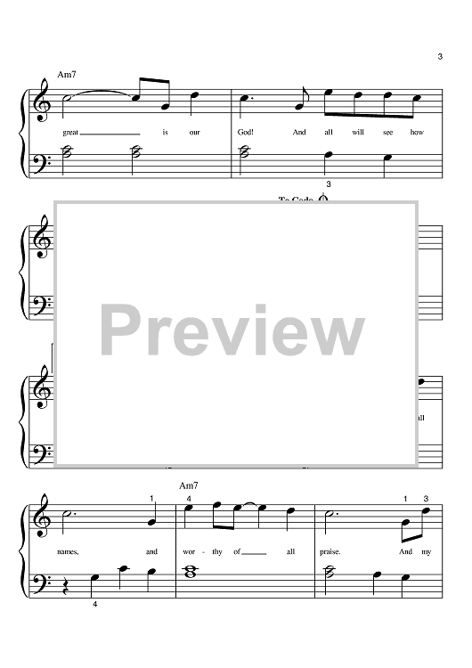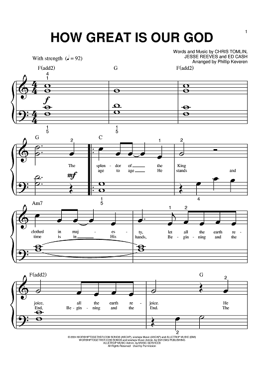 Digital Sheet Music for How Great Is Our God by Chris Tomlin, Jesse Reeves, Ed Cash, Phillip Keveren scored for Big Note Piano; id:396893