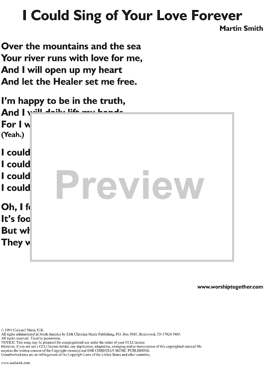 Digital Sheet Music for I Could Sing of Your Love Forever by Martin Smith, Delirious? scored for Lead Sheet; id:111249