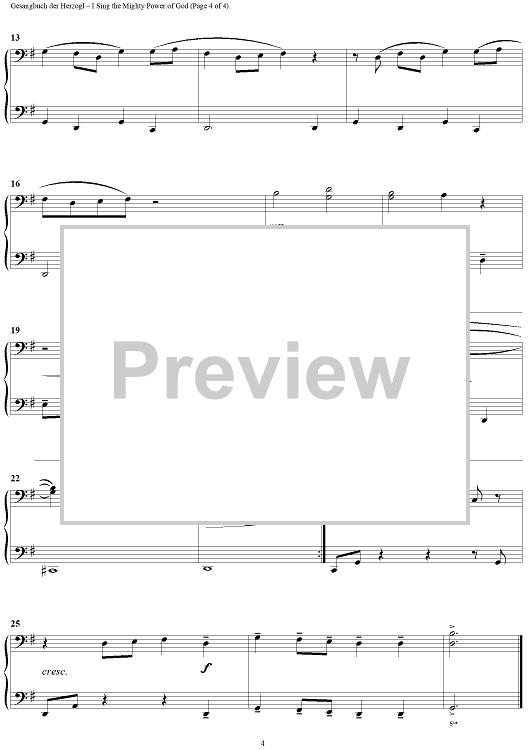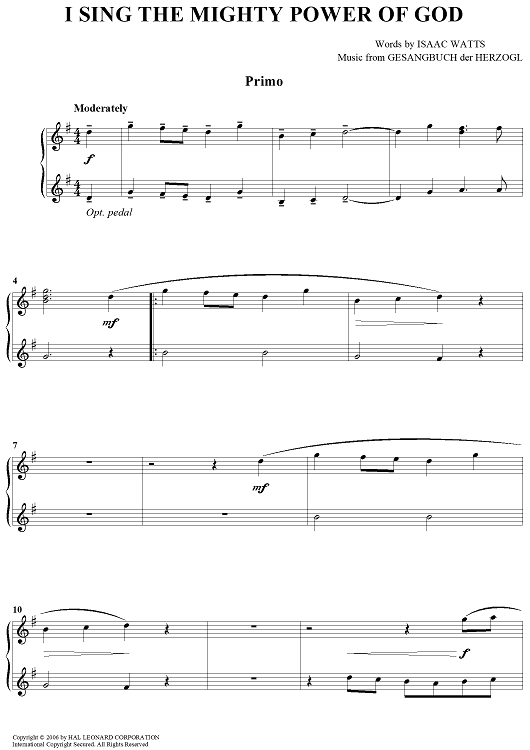 Digital Sheet Music for I Sing The Mighty Power Of God by Isaac Watts, Gesangbuch der Herzogl scored for 1 Piano, 4 Hands; id:390189