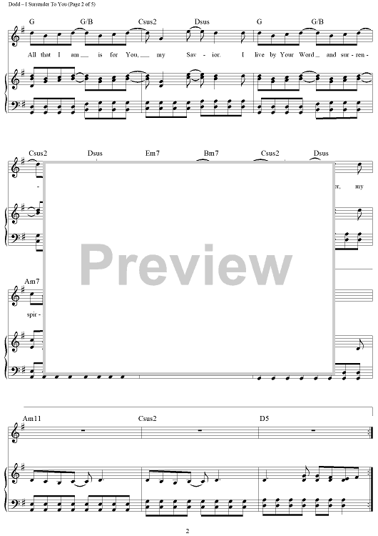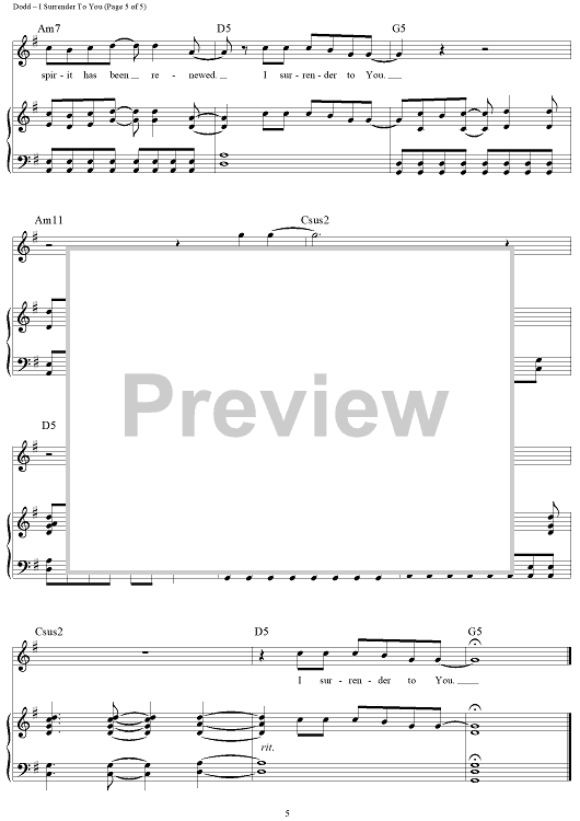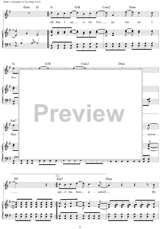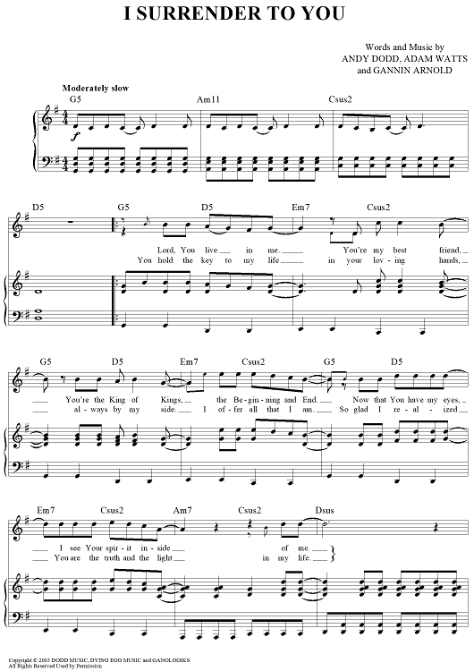 Digital Sheet Music for I Surrender To You by Jeremy Camp, Adam Watts, Andy Dodd, Gannin Arnold scored for Piano/Vocal/Chords; id:464110
