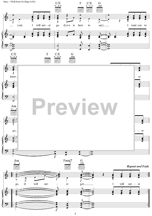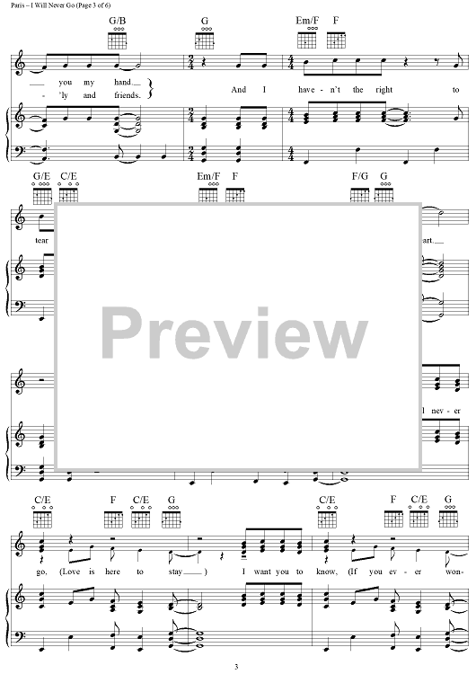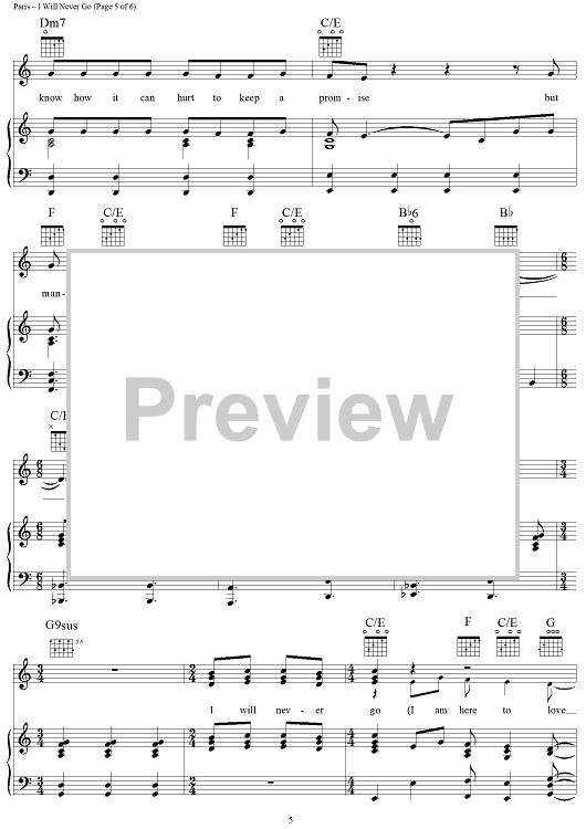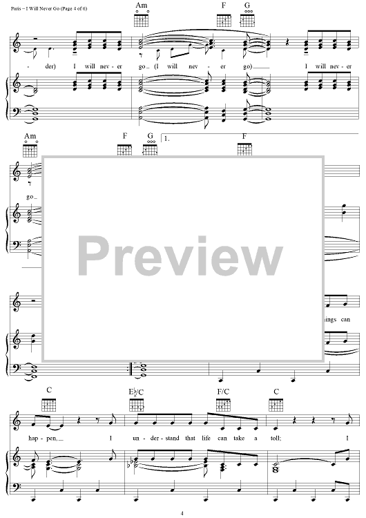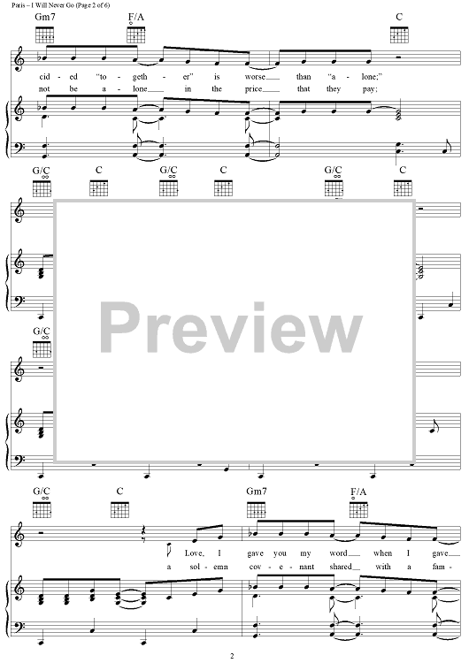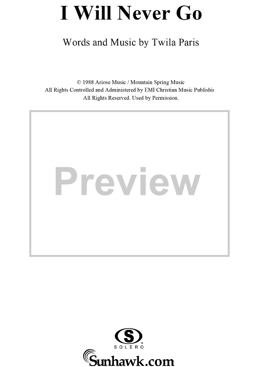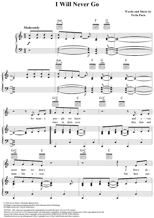 Digital Sheet Music for I Will Never Go by Twila Paris scored for Piano/Vocal/Chords; id:113816