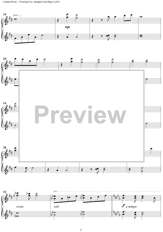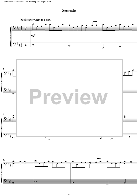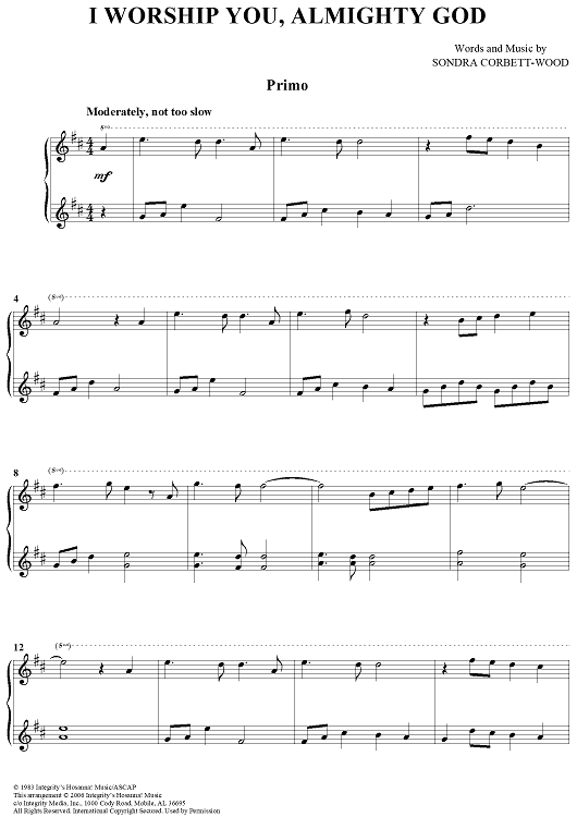 Digital Sheet Music for I Worship You, Almighty God by Sondra Corbett-Wood scored for 1 Piano, 4 Hands; id:393379