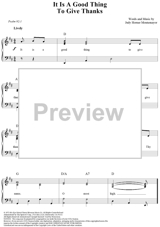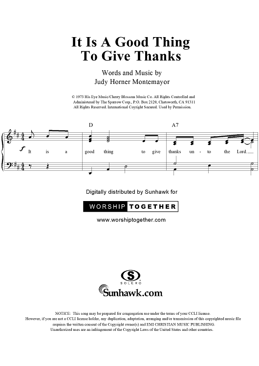 Digital Sheet Music for It Is a Good Thing to Give Thanks by Judy Horner Montemayor scored for Piano/Vocal/Chords; id:112705