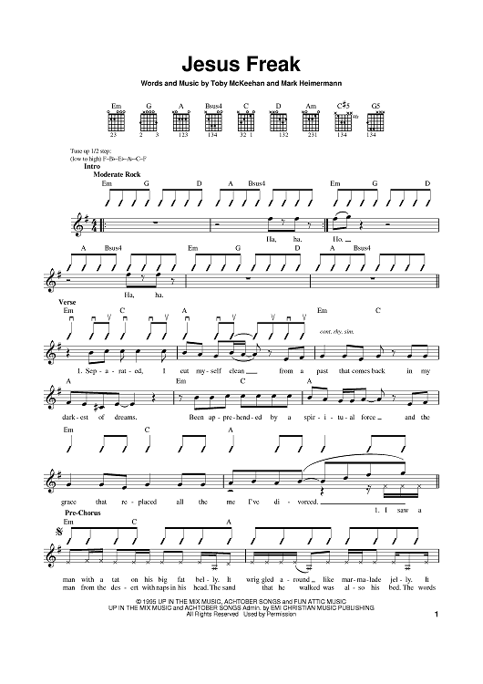 Digital Sheet Music for Jesus Freak by DC Talk, Mark Heimermann, tobyMac scored for Lead Sheet with Guitar Grids; id:372194