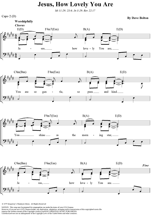 Digital Sheet Music for Jesus, How Lovely You Are by Dave Bolton scored for Piano/Vocal/Chords; id:109772