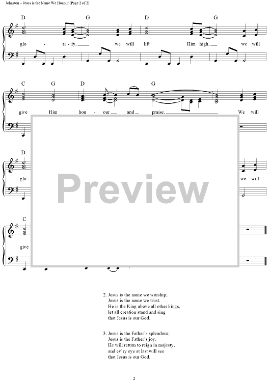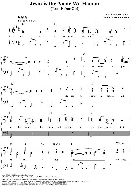 Digital Sheet Music for Jesus is the Name We Honour (Jesus Is Our God) by Philip Lawson Johnsten scored for Piano/Vocal/Chords; id:191593