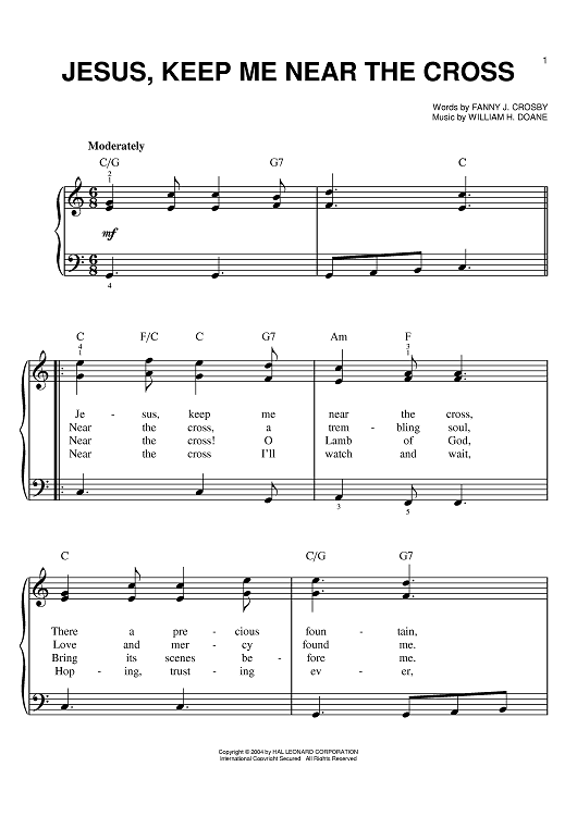 Digital Sheet Music for Jesus, Keep Me Near The Cross by Fanny Crosby, William H. Doane scored for Easy Piano; id:381089