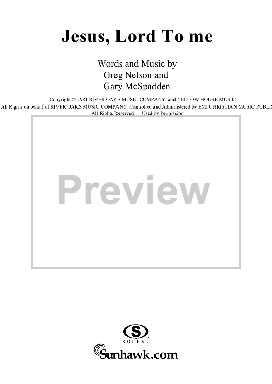 "Jesus, Lord To Me" Sheet Music by Greg Nelson