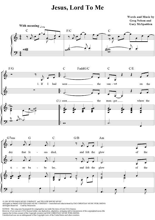 Digital Sheet Music for Jesus, Lord To Me by Greg Nelson, Gary McSpadden scored for Piano/Vocal/Chords; id:112706