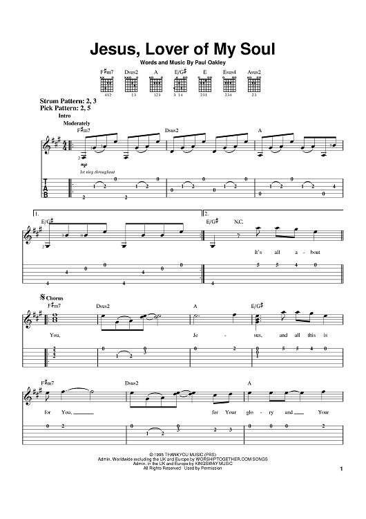 Digital Sheet Music for Jesus, Lover Of My Soul by Paul Oakley, Passion Band scored for Easy Guitar Tab; id:375403