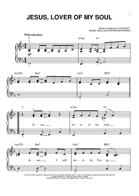 Digital Sheet Music for Jesus, Lover Of My Soul by John Ezzy, Daniel Grul, Stephen McPherson scored for Easy Piano; id:391314
