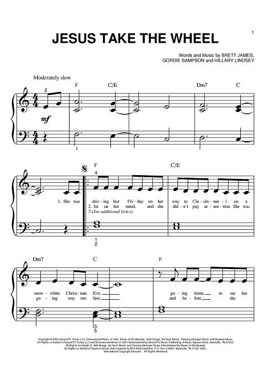 Digital Sheet Music for Jesus Take The Wheel by Brett James, Hillary Lindsey, Gordie Sampson, Carrie Underwood scored for Big Note Piano; id:392344