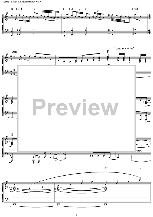 "Keith's Piano Prelude" Sheet Music by Keith Gordon Green
