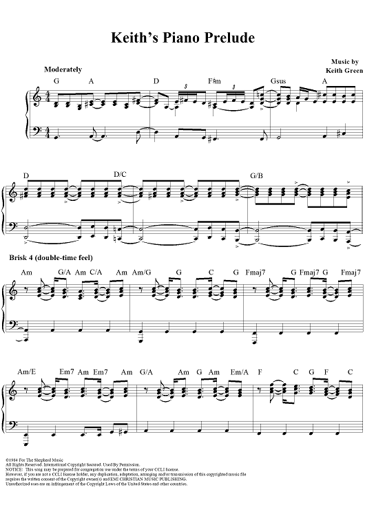 Digital Sheet Music for Keith's Piano Prelude by Keith Green scored for Piano Solo; id:112434