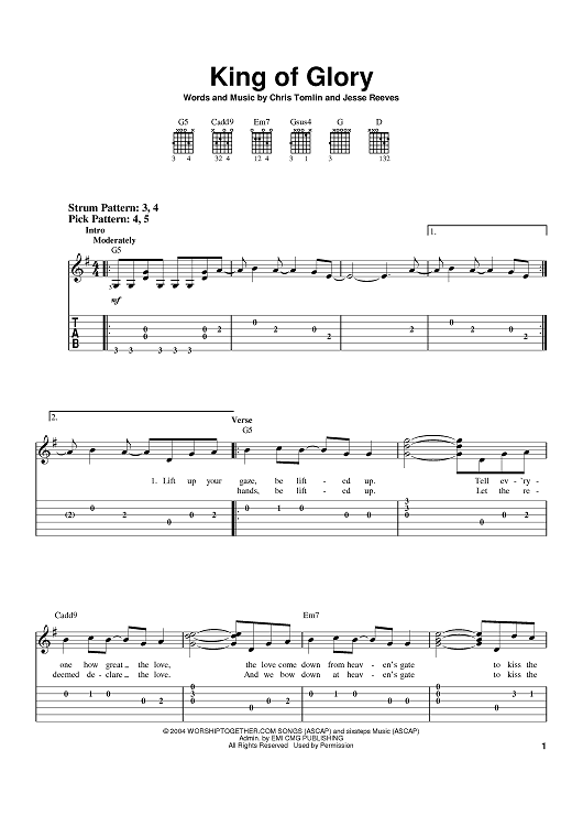 Digital Sheet Music for King Of Glory by Chris Tomlin, Jesse Reeves scored for Easy Guitar Tab; id:395301