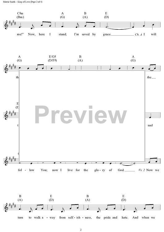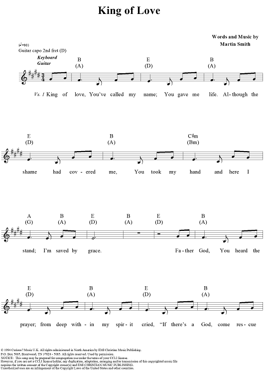 Digital Sheet Music for King of Love by , Martin Smith, Delirious? scored for Lead Sheet; id:95761