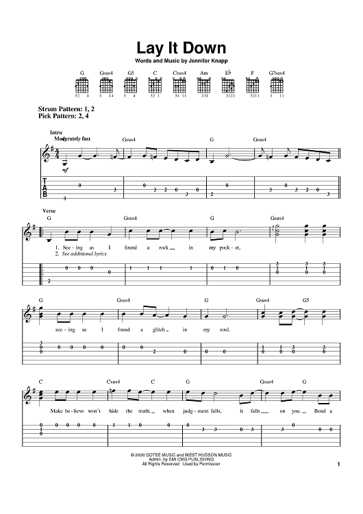 Digital Sheet Music for Lay It Down by Jennifer Knapp scored for Easy Guitar Tab; id:375390