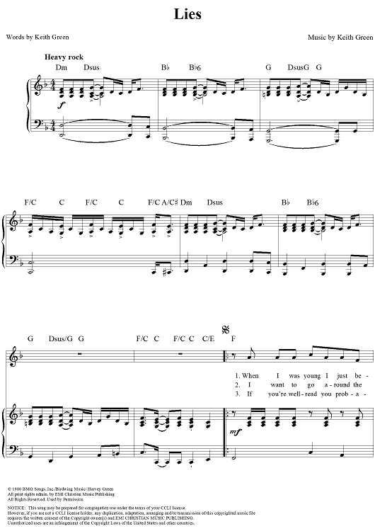 Digital Sheet Music for Lies by Keith Green scored for Piano/Vocal/Chords; id:113500