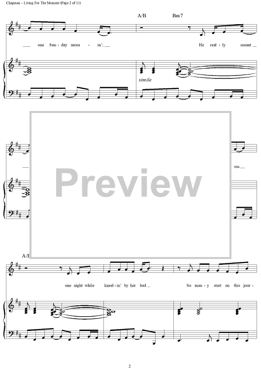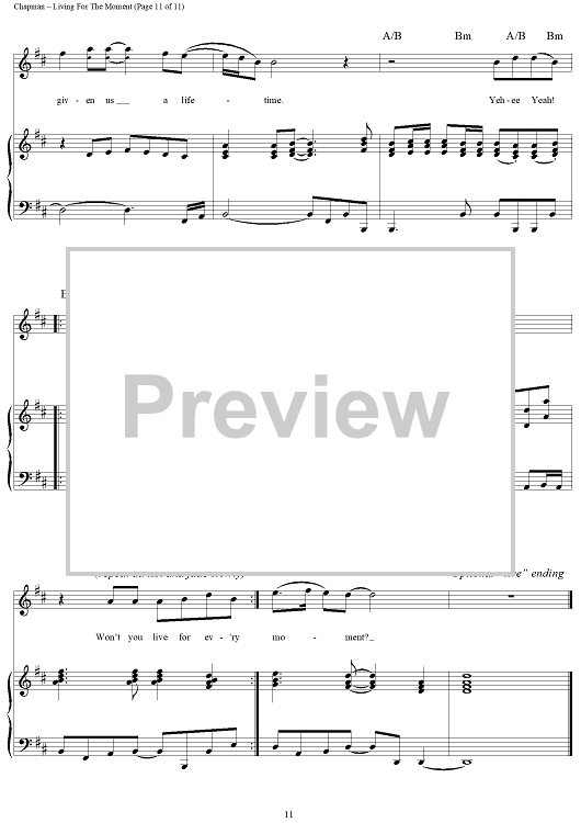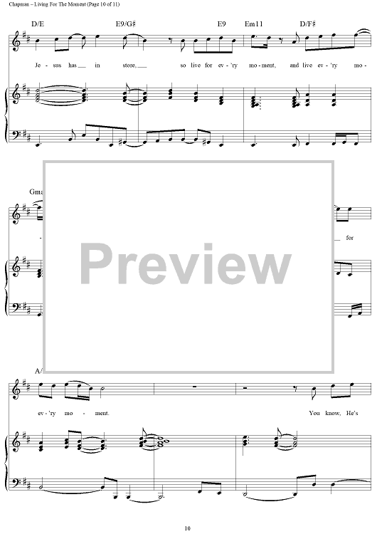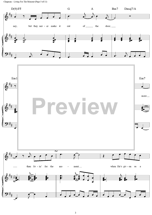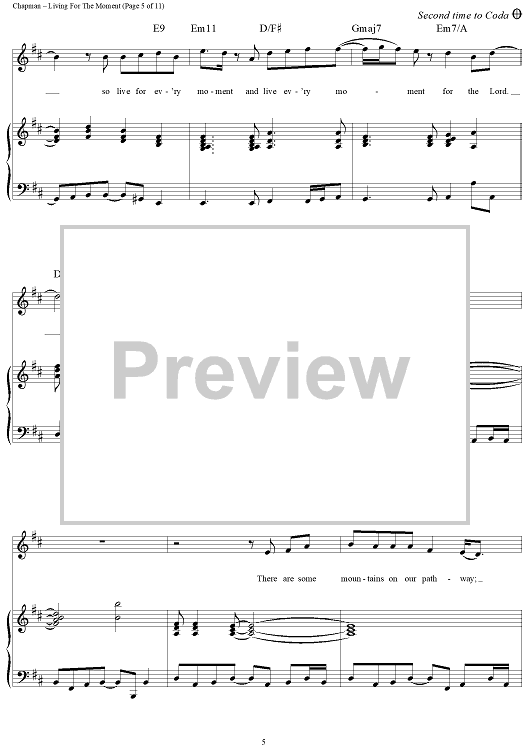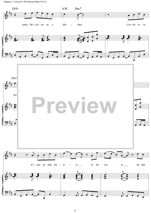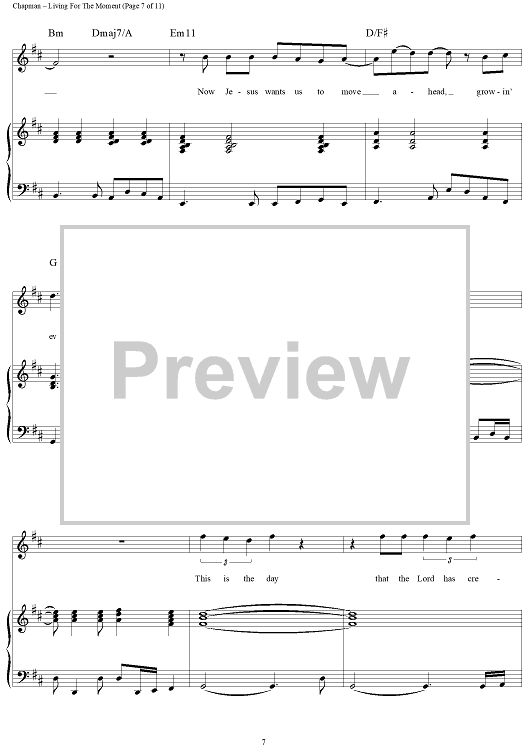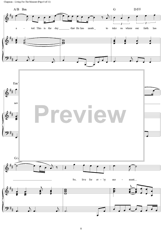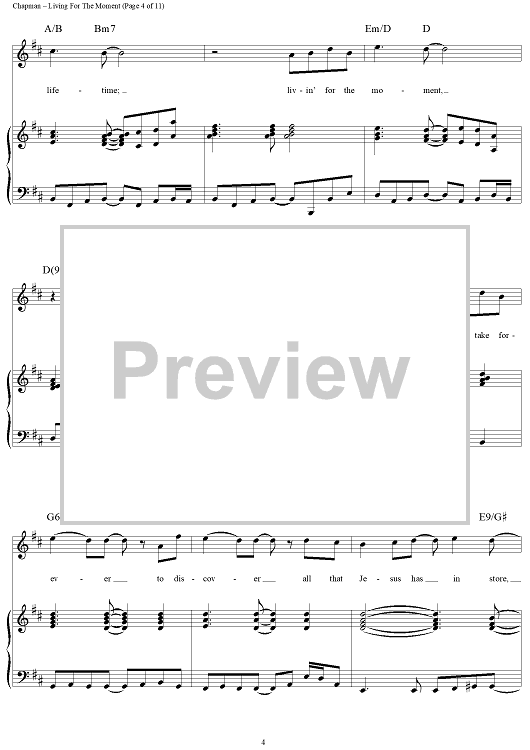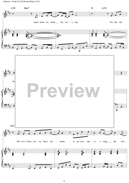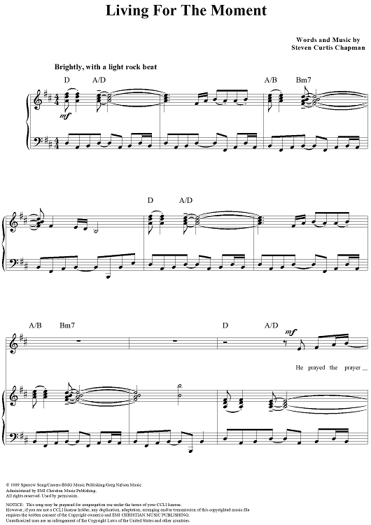 Digital Sheet Music for Living for the Moment by Steven Curtis Chapman scored for Piano/Vocal/Chords; id:119067