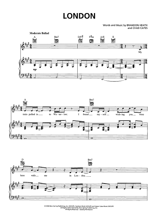 Digital Sheet Music for London by Chad Cates, Brandon Heath scored for Piano/Vocal/Chords; id:460431