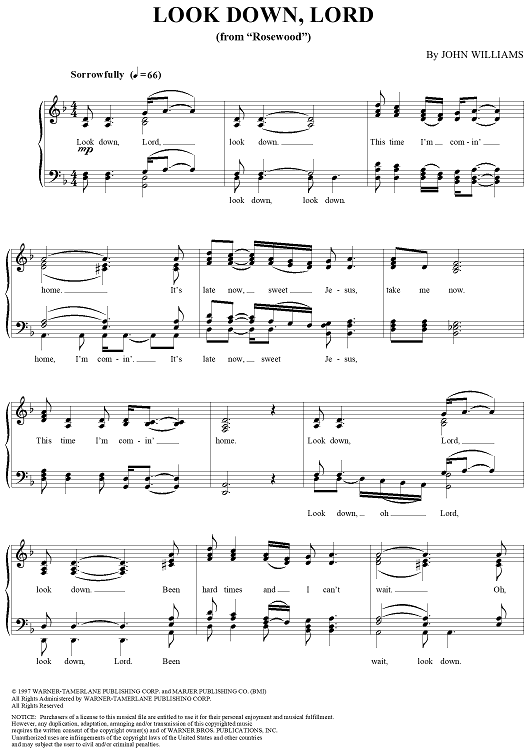 Digital Sheet Music for Look Down, Lord by John Williams scored for Piano/Vocal; id:292414