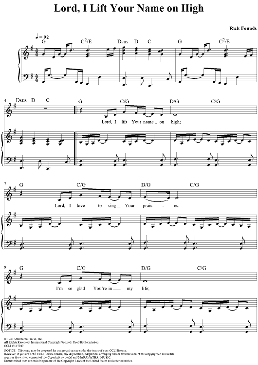 "Lord, I Lift Your Name On High" Sheet Music by Rick Founds