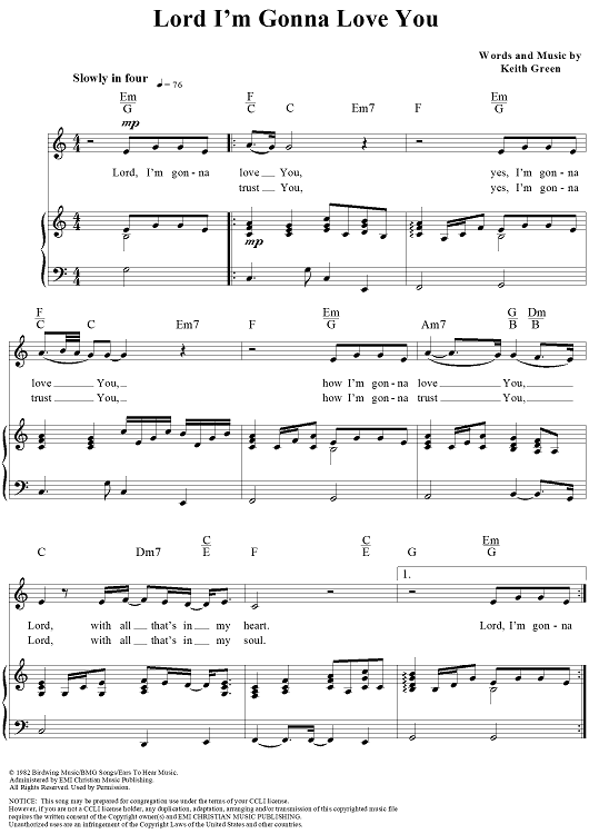 Digital Sheet Music for Lord I'm Gonna Love You by Keith Green scored for Piano/Vocal/Chords; id:111218