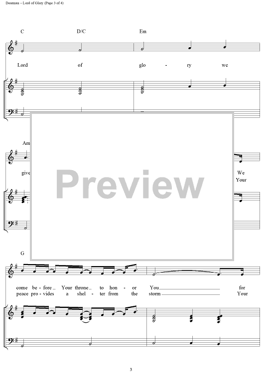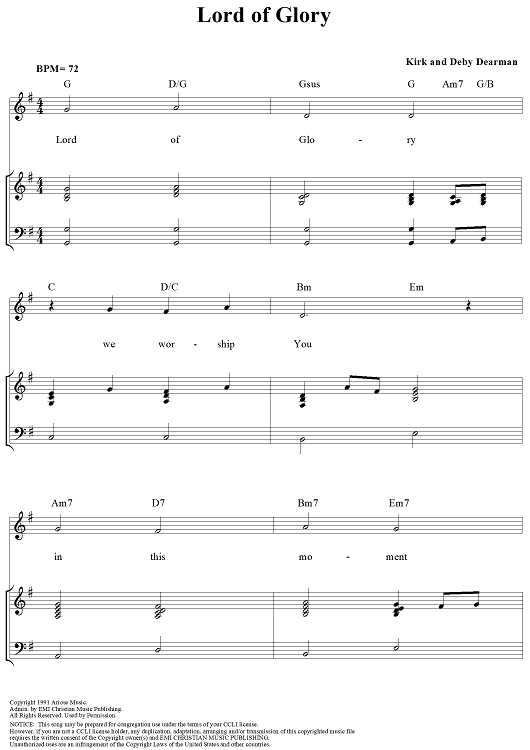 Digital Sheet Music for Lord of Glory by Kirk Dearman, Deby Dearman scored for Piano/Vocal/Chords; id:109854