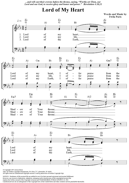 Digital Sheet Music for Lord of My Heart by Twila Paris scored for Piano/Vocal/Chords; id:109207