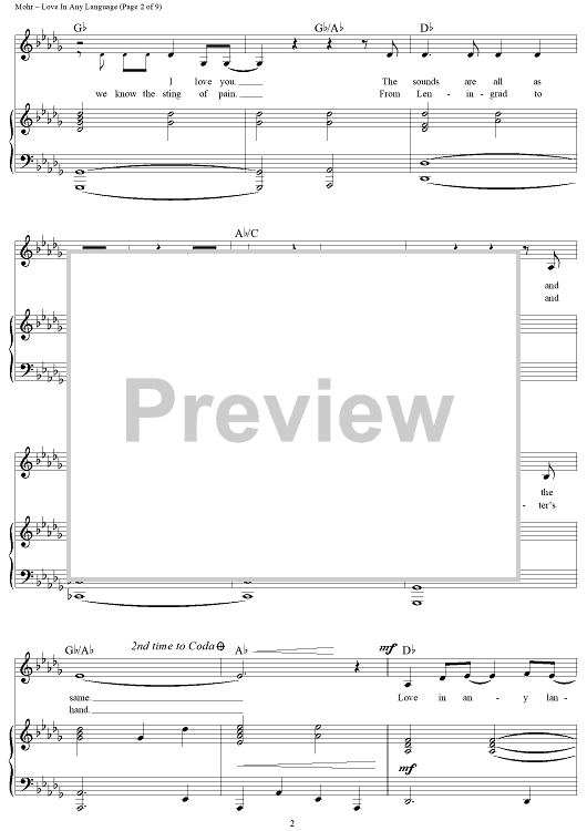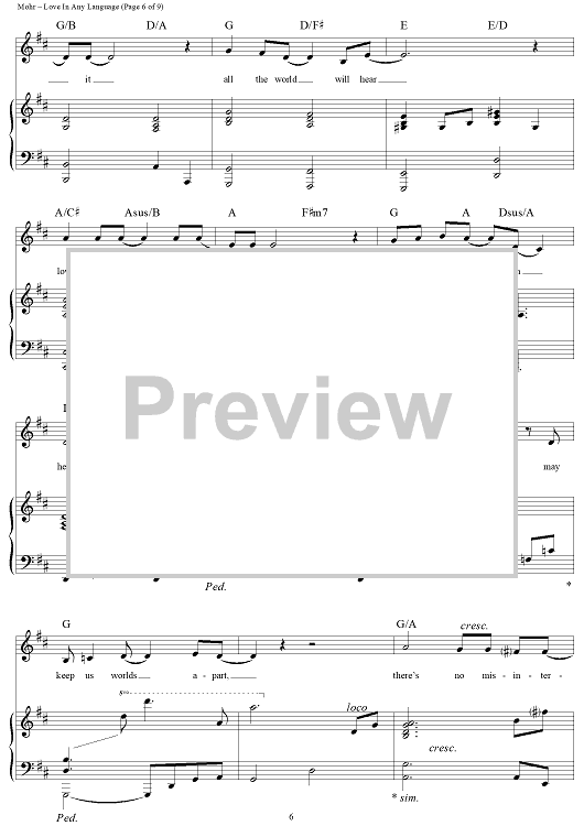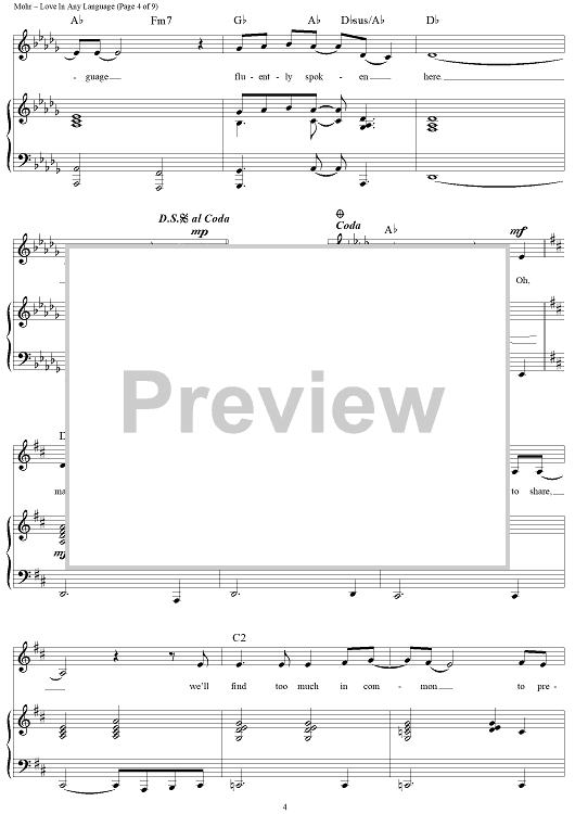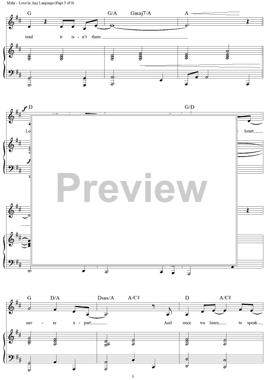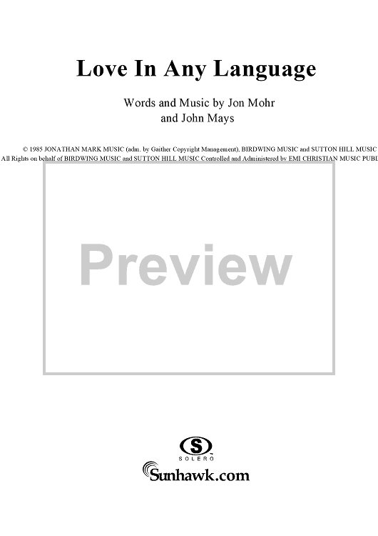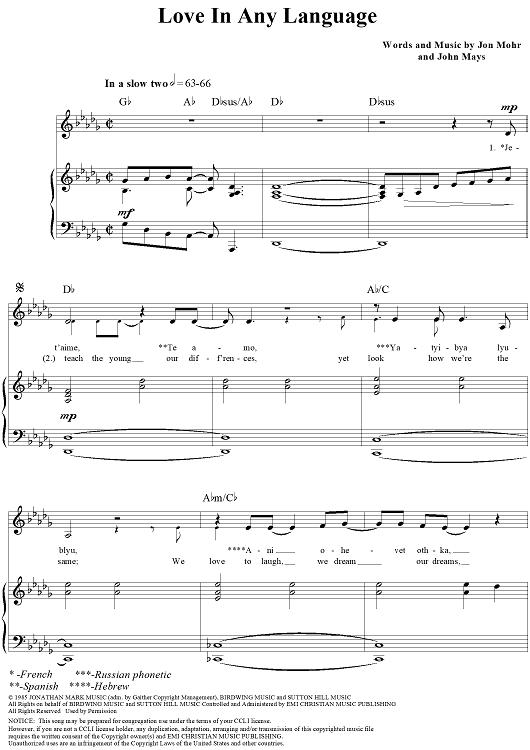 Digital Sheet Music for Love In Any Language by Jon Mohr, John Mays, Sandi Patty scored for Piano/Vocal/Chords; id:112710