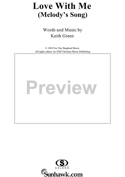 Digital Sheet Music for Love With Me (Melody's Song) by Keith Green scored for Piano/Vocal/Chords; id:112437
