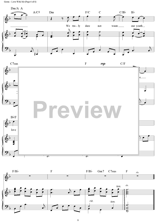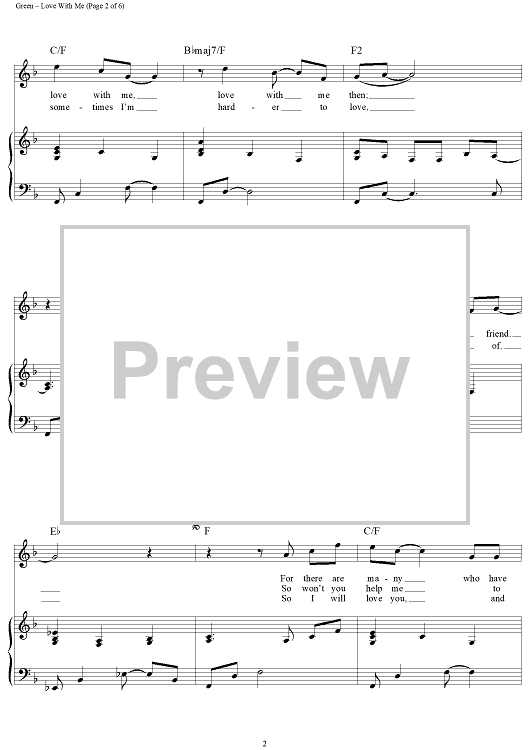 "Love With Me (Melody's Song)" Sheet Music by Keith Gordon Green