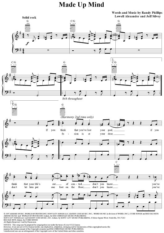 Digital Sheet Music for Made Up Mind by Lowell Alexander, Jeff Silvey, Randy Phillips, Phillips, Craig and Dean scored for Piano/Vocal/Chords; id:119636
