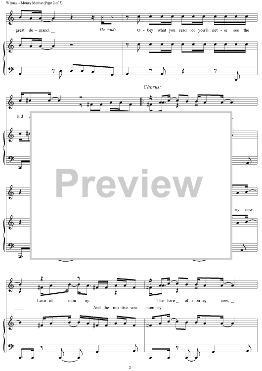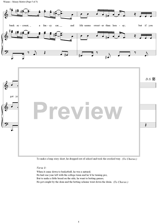 Digital Sheet Music for Money Motive by Carvin Winans, The Winans scored for Piano/Vocal/Chords; id:264026