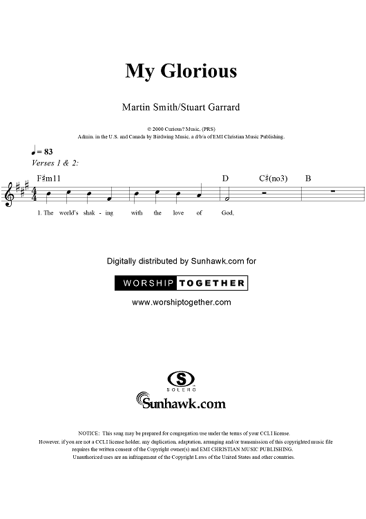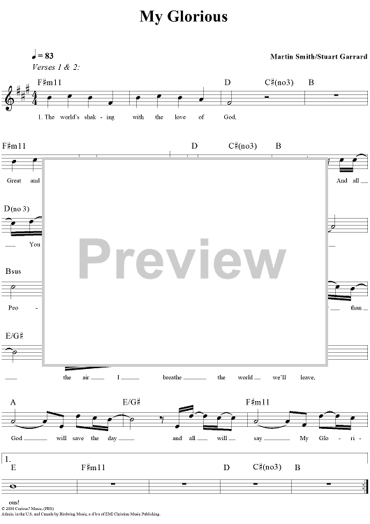 Digital Sheet Music for My Glorious by Martin Smith, Stu G, Delirious? scored for Lead Sheet; id:241238
