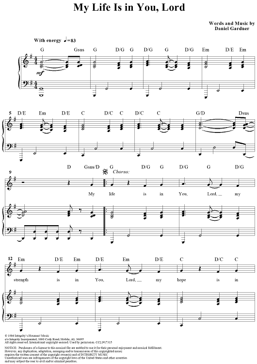 Digital Sheet Music for My Life Is in You, Lord by Daniel Gardner scored for Piano/Vocal/Chords; id:132922
