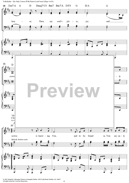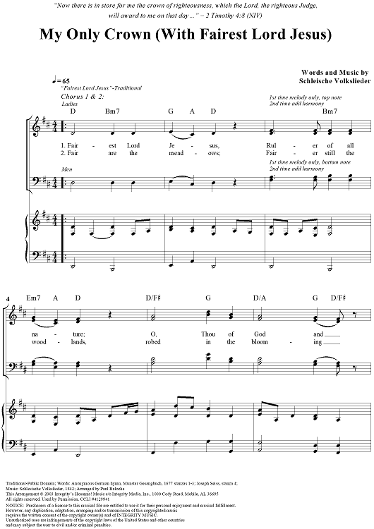 Digital Sheet Music for My Only Crown (with Fairest Lord Jesus) by Paul Baloche, Schleische Volkslieder, Traditional scored for Mixed Chorus/Piano; id:308896