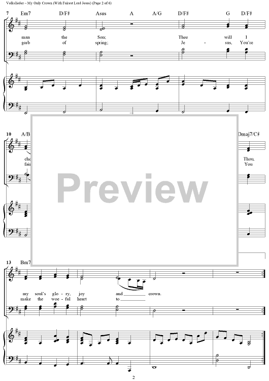 "My Only Crown (with Fairest Lord Jesus)" Sheet Music by Schleische Volkslieder