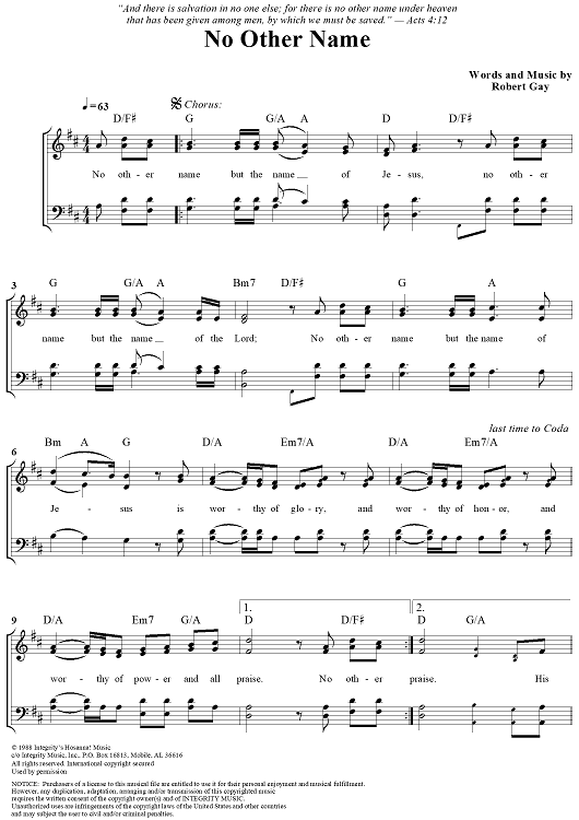 Digital Sheet Music for No Other Name by Robert Gay scored for Four-part Mixed Chorus/Piano; id:308291