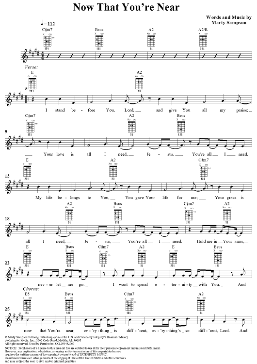 Digital Sheet Music for Now That You're Near by Marty Sampson scored for Lead Sheet; id:314362