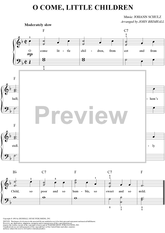 Digital Sheet Music for O Come, Little Children by John Brimhall, Johann Abraham Peter Schulz scored for Easy Piano/Vocal; id:257337