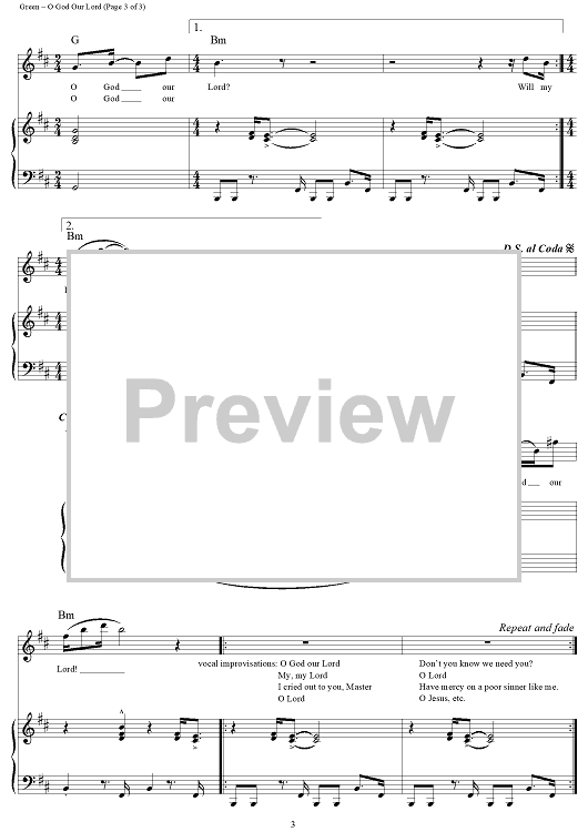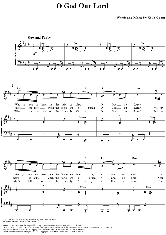 Digital Sheet Music for O God Our Lord by Keith Green scored for Piano/Vocal/Chords; id:112441