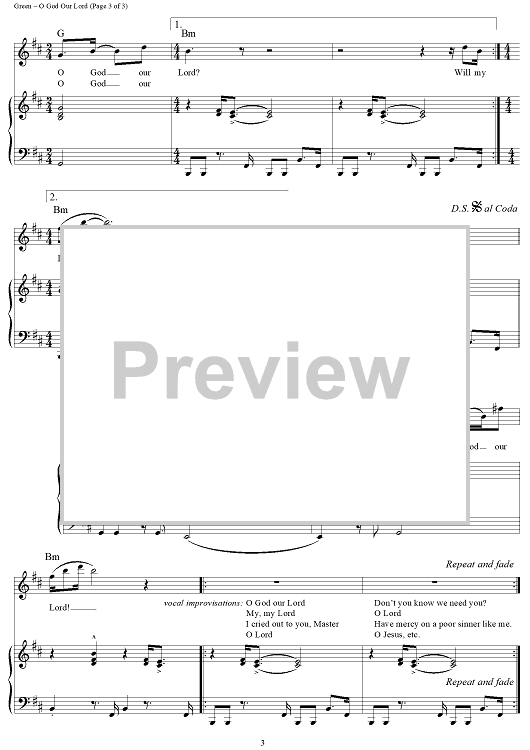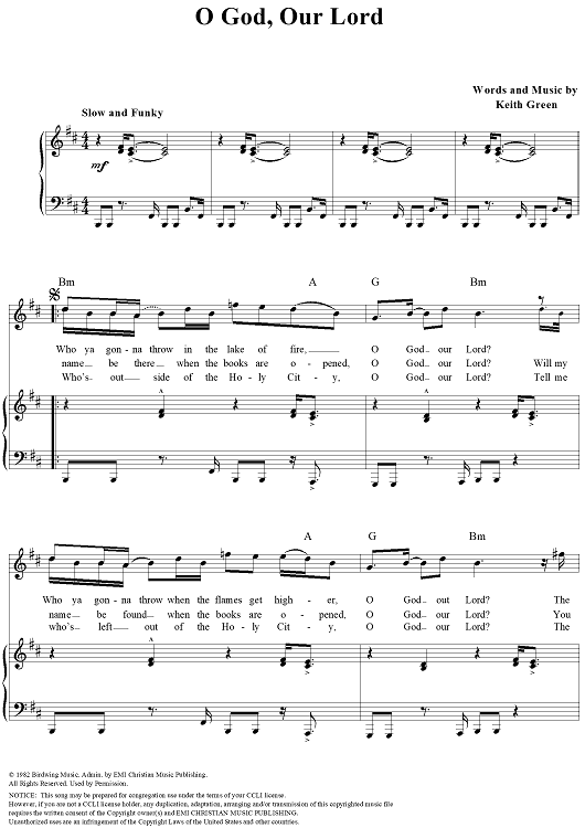 Digital Sheet Music for O God, Our Lord by Keith Green scored for Piano/Vocal/Chords; id:113291